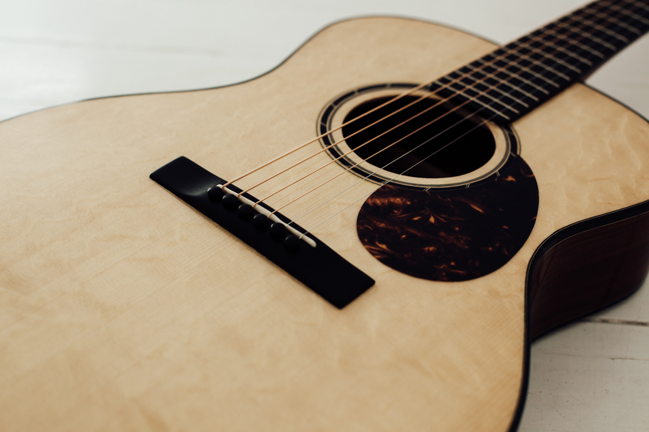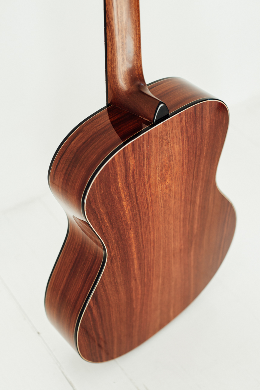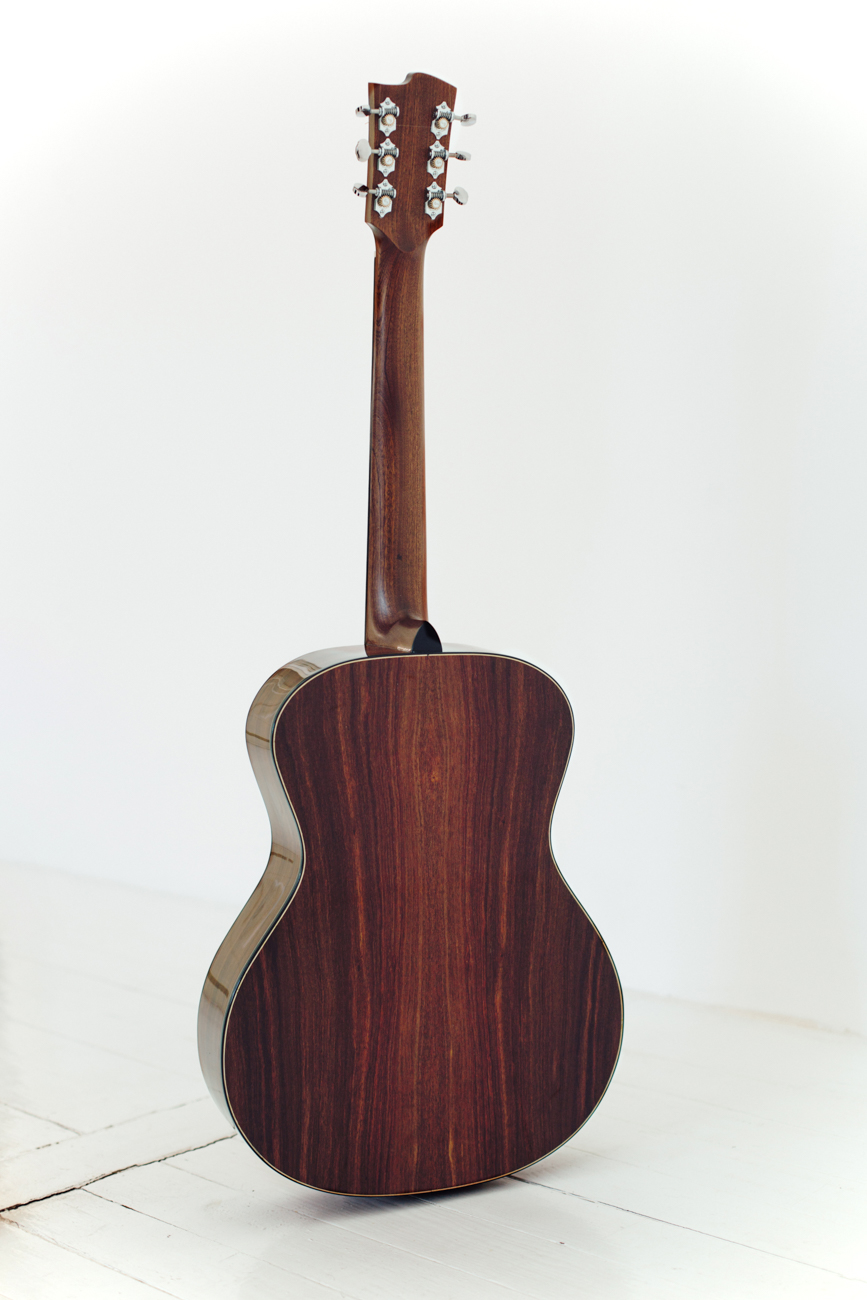 Ebenso wie mein Dreadnought Model ist das Orchestra Model eine Rückbesinnung auf das klare Design, den geschätzen Klang und das Flair der Gitarren der 1930er Jahren, das, so wie damals, durch viel Handarbeit entsteht. Auch hier vertraue ich auf traditionelle Konstruktionsmethoden, wie den Einsatz von Heißleim und eine Schwalbenschwanz-Hals-Korpus-Verbindung, zusammen mit handselektierten Hölzern. Das Orchestra Model zeichnet sich durch einen ausgewogenen Klang durch alle Register aus, der, ohne das Fundament zu vernachlässigen, eine „singende“ Quälität im Fingerpicking und Solospiel bietet.